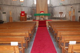 7年後、初代主任司祭のチベサー神父様らの大きな援助のお陰で、ジョージ・ナカシマの設計による現在の聖堂が建立されました。