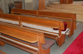 3 聖堂信徒席の棚の整備(今までは、物を置くスペースが狭く、パンフレット類がよく下に落ちていました)