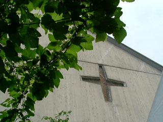 阪急桂駅にほど近い閑静な住宅街に、その教会堂はある。緩やかに曲線を描きながら反りあがる屋根と、それ