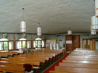 の聖堂は、木工家具デザイナーとして知られるジョージ・ナカシマによって設計された。照明、家具などのイン